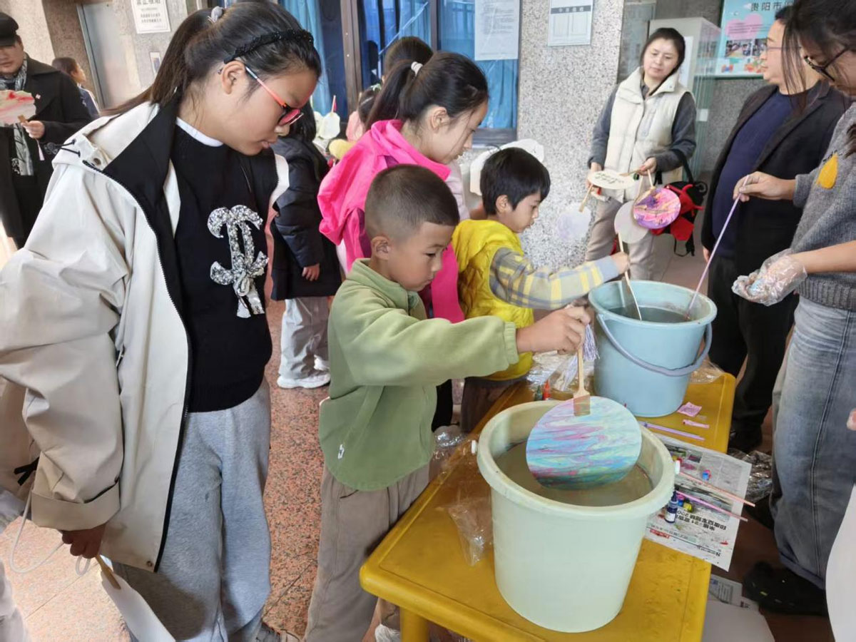 读者小朋友们展示手工漆扇,自己进行艺术创作真快乐!