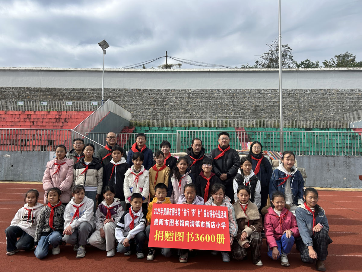贵阳市图书馆 “书行‘香’村 阅启暖途” 爱心捐书公益活动走进清镇市新店小学,汇聚腾讯公益、贵州师范学院数学与大数据学院、东莞东聚电子电讯制品有限公司、阜阳科技工程学校等多方爱心力量,为该校带去涵盖文学、科普、益智等多领域的3600册优质图书,以书香为媒,点亮乡村孩子们的成长之路。