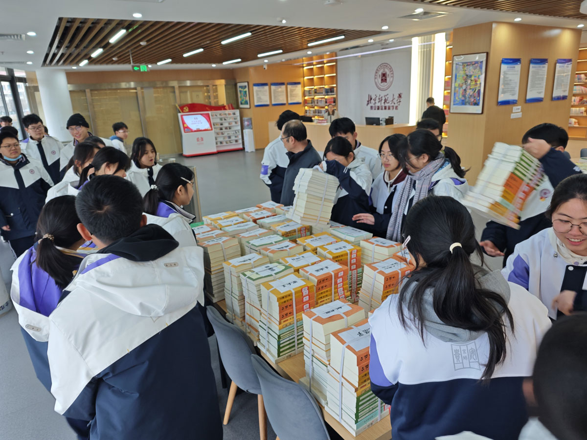 12月10日,贵阳市图书馆的工作人员精心准备了600余册图书,走进了北京师范大学贵安新区附属学校开展了一次送书到班级的借阅活动。此批图书是该校高一(2)班的老师根据学生阅读兴趣而准备的书单,贵阳市图书馆工作人员按照书单以每一位学生为单元执行图书挑选、借阅出库、分装打包,然后送至学生手中。