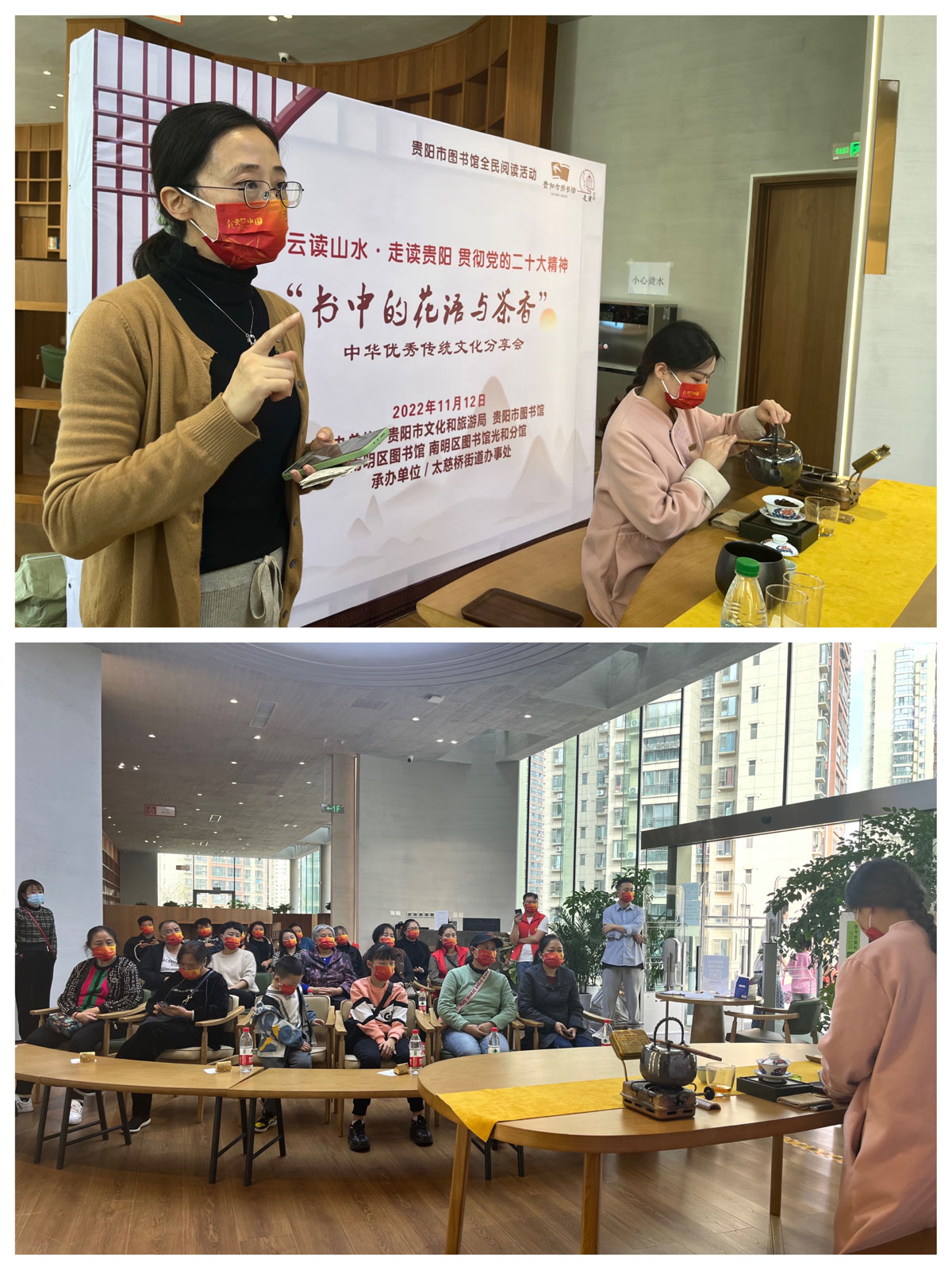 “创新阅读推广方式,让老百姓自己订文化活动菜单,做大众喜闻乐见的文化活动”,这是“云读山水•走读贵阳”活动进社区以来,与社区联合开展活动达成的一个共识。11月12日,在太慈桥街道办事处举办的这个充满书香花语、书香茶韵的中华优秀传统文化分享会,就是由太慈桥街道办“点单”,由贵阳市图书馆和南明区图书馆共同举办,活动受到当地社区群众喜爱。