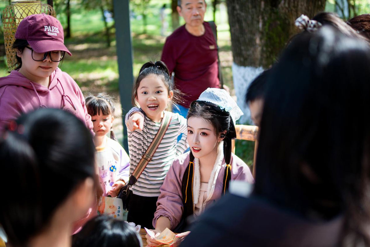 (活动现场)本次活动以创新的形式,旨在让市民和游客感受花溪公园秀美景色的同时推广阅读、弘扬传统文化,激发公众对传统文化的探索热情。