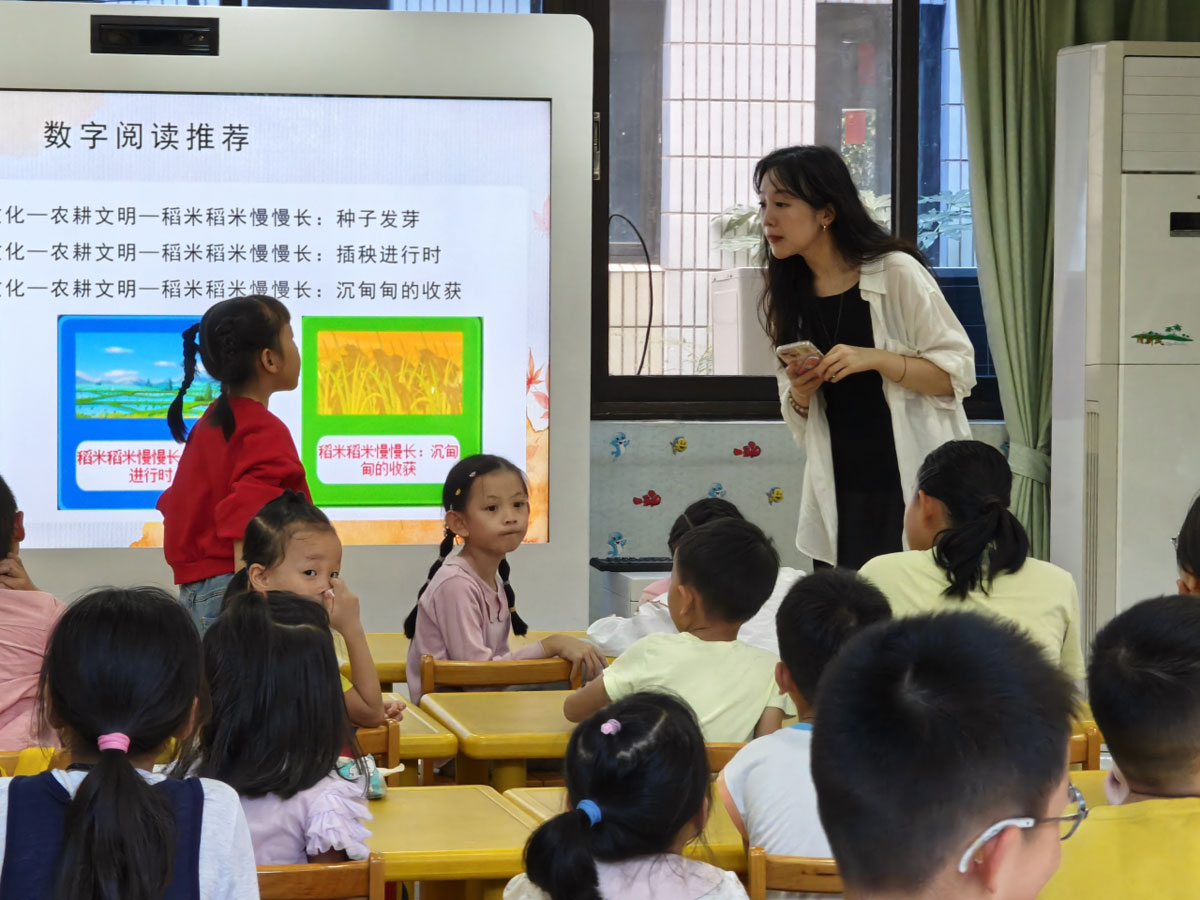 课堂上,老师带领孩子们认识了中国几位为水稻做出了巨大贡献的科学家。通过讲述科学家的故事、以及他们研究领域的杰出贡献,让孩子们感受到了科学家对国家和人民的深厚情感。
