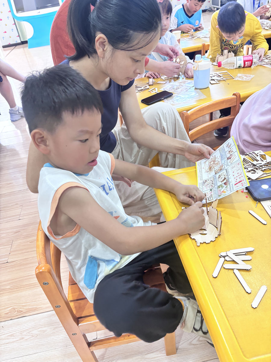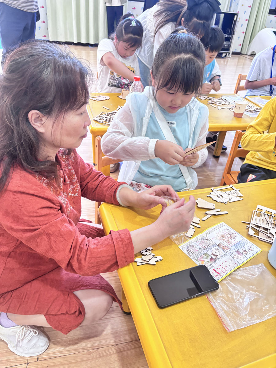 在创意手作“五谷丰登”风谷机的环节,孩子们纷纷拿起工具动手制作。低头专注拼接,转眼间,一个个形态各异却同样可爱的 “风谷机“陆续诞生,孩子们举着作品,脸上满是喜悦。