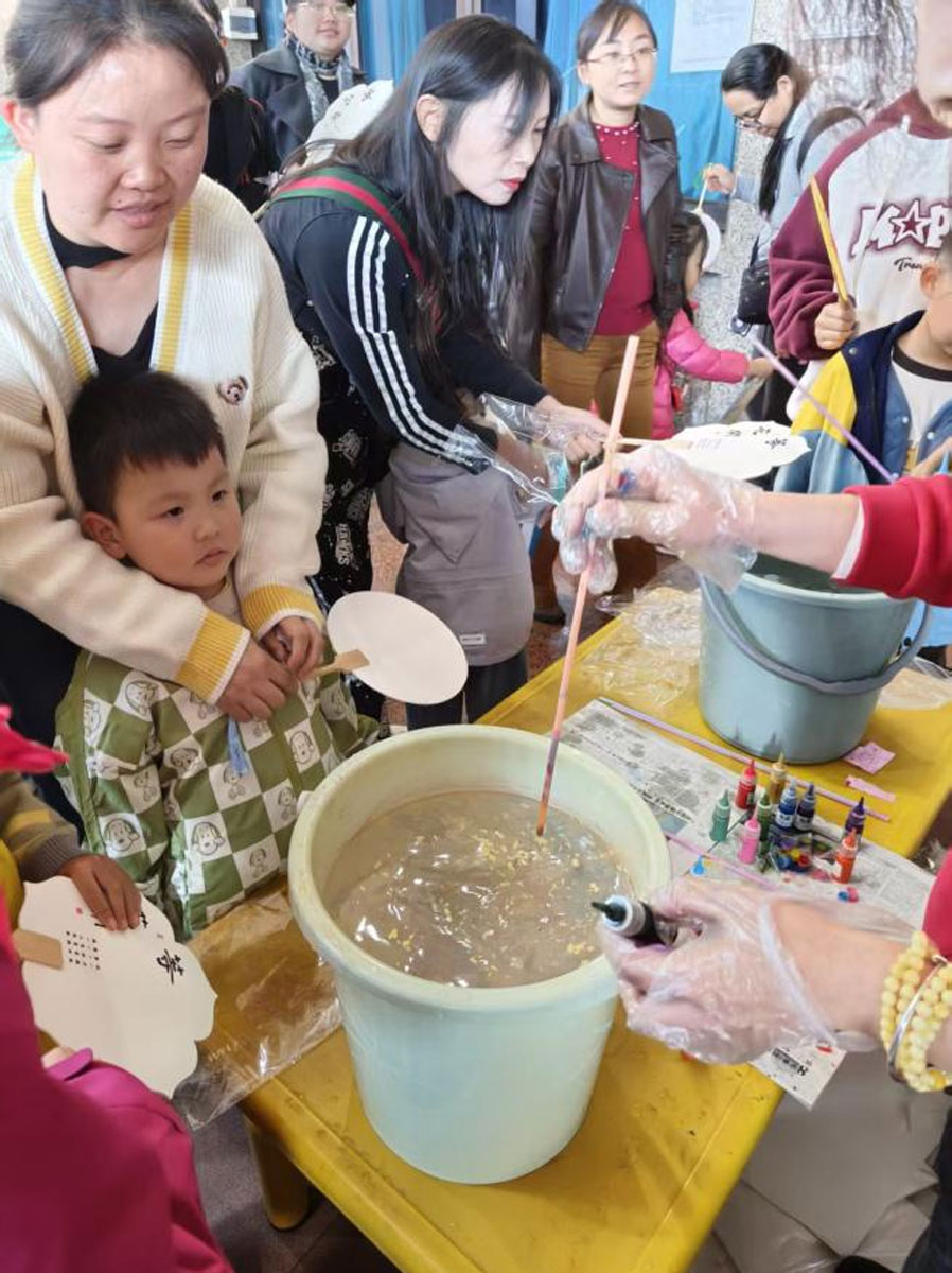 读者小朋友们展示手工漆扇,自己进行艺术创作真快乐!