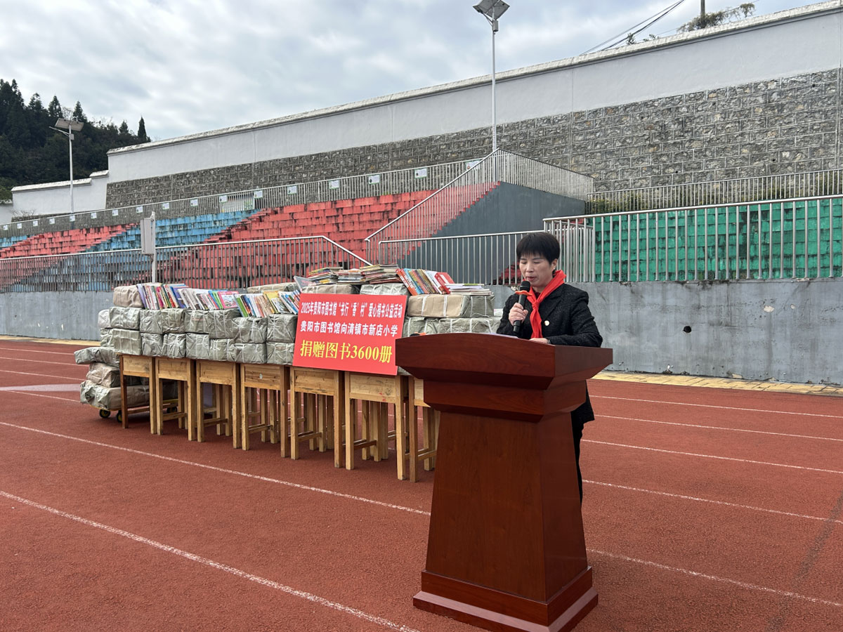 活动现场,新店小学的少先队员代表为到场嘉宾佩戴鲜艳的红领巾,以此表达对爱心人士的欢迎与感激。随后,该校党支部书记、校长吴学军登台发言,强调了阅读对乡村儿童成长的重要意义,以及公益捐书活动在推动乡村文化振兴中的积极作用。紧接着,学生代表发言,用稚嫩的声音表示,他们将铭记这份关爱,未来用行动回馈社会,让爱心延续下去。在捐书仪式环节,一摞摞精心筛选的图书被正式移交,整个操场都氤氲着知识传递的温暖与力量。