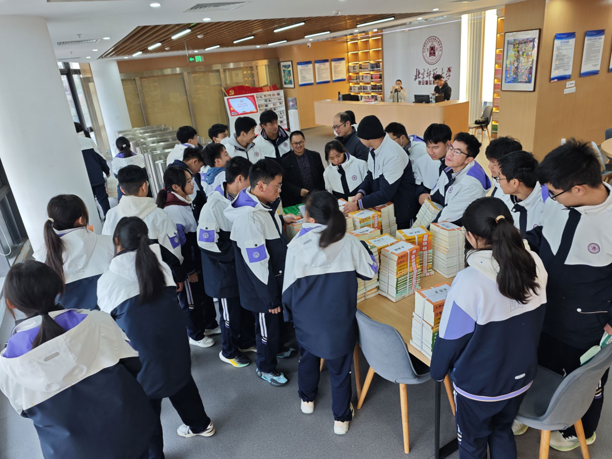 12月10日,贵阳市图书馆的工作人员精心准备了600余册图书,走进了北京师范大学贵安新区附属学校开展了一次送书到班级的借阅活动。此批图书是该校高一(2)班的老师根据学生阅读兴趣而准备的书单,贵阳市图书馆工作人员按照书单以每一位学生为单元执行图书挑选、借阅出库、分装打包,然后送至学生手中。